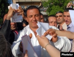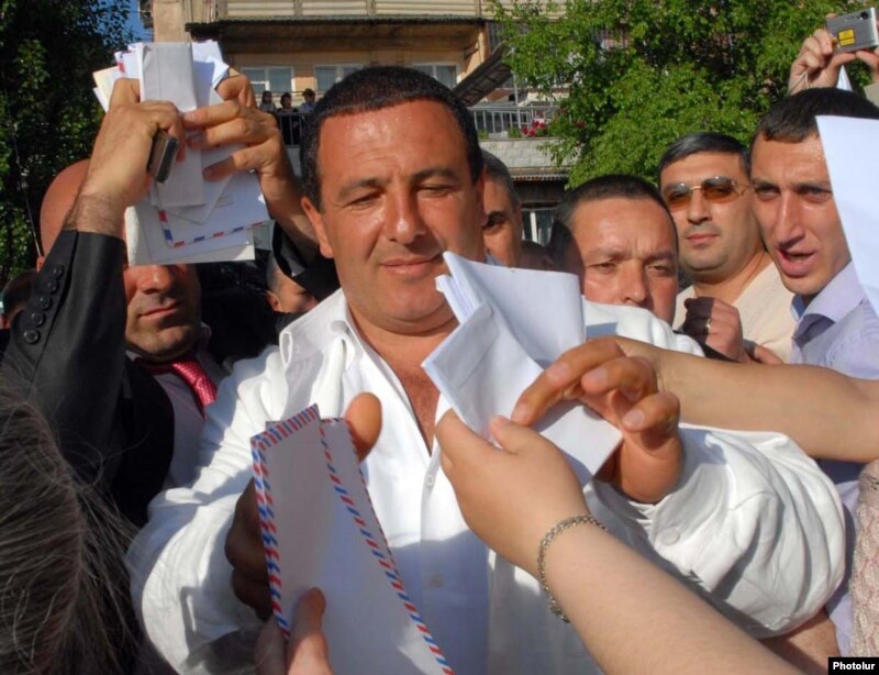 Armenia -- Voters hand letters to Gagik Tsarukian, the leader of the pro-government Prosperous Armenia Party, at a campaign rally in Yerevan on May 19, 2009.