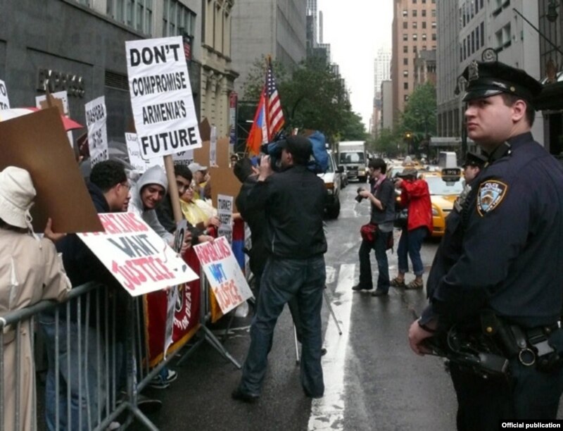 Executive Director of the Armenian National Committee of America Aram Hamparian, who coordinated the protest actions of the Armenian Revolutionary Federation in New York, said to RFE/RL: “The negotiations on these protocols proceeded in a secret atmosphere. A six-week period was set for the Armenian and Turkish sides to give approval to the documents. In reality, however, the protocols are not subject to change, even to the slightest alteration.”“Two leading Armenian publications in the United States, Asbarez and The Armenian Reporter, conducted opinion polls among 2,400 local Armenians. The polls show that 90 percent of the respondents are against the protocols. And between 94 and 95 percent of the respondents consider that the protocols are more favorable for Turkey,” said Hamparian.