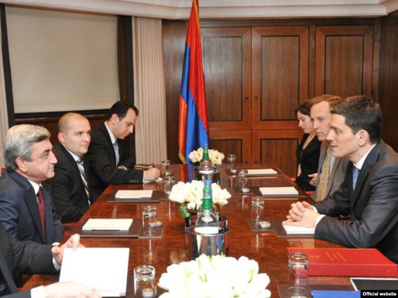 Затем президент Серж Саргсян в своей лондонской резиденции принял министра иностранных дел Великобритании Дэвида Милибенда. По сообщению пресс-секретаря президента, в ходе встречи обсуждалась инициатива Восточного партнерства Евросоюза. Президент Армении высказал благодарность правительству Соединенного Королевства за помощь, оказываемую Армении со дня обретения ею независимости. Касаясь вопросов безопасности на Кавказе, Дэвид Милибенд приветствовал усилия президента Армении, направленные на урегулирование отношений с Турцией, и отметил, что Соединенное Королевство поддерживает этот процесс.