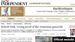 Британская газета The Independent опубликовала статью Роберта Фиска, посвященную Геноциду армян.