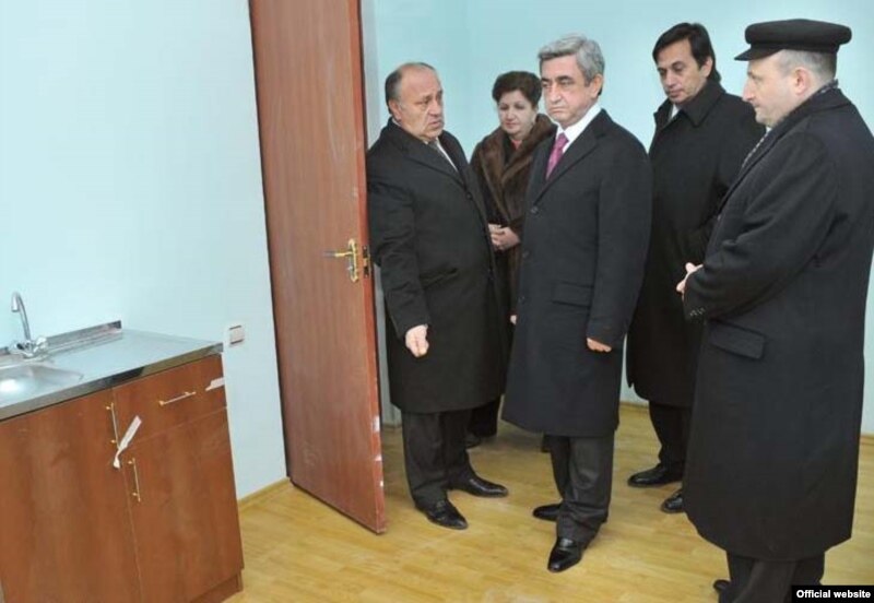 Армения - Президент Армении Серж Саргсян изучает недавно построенную квартиру в квартале Муш-2 г.Гюмри. 23 декабря 2010 г.
