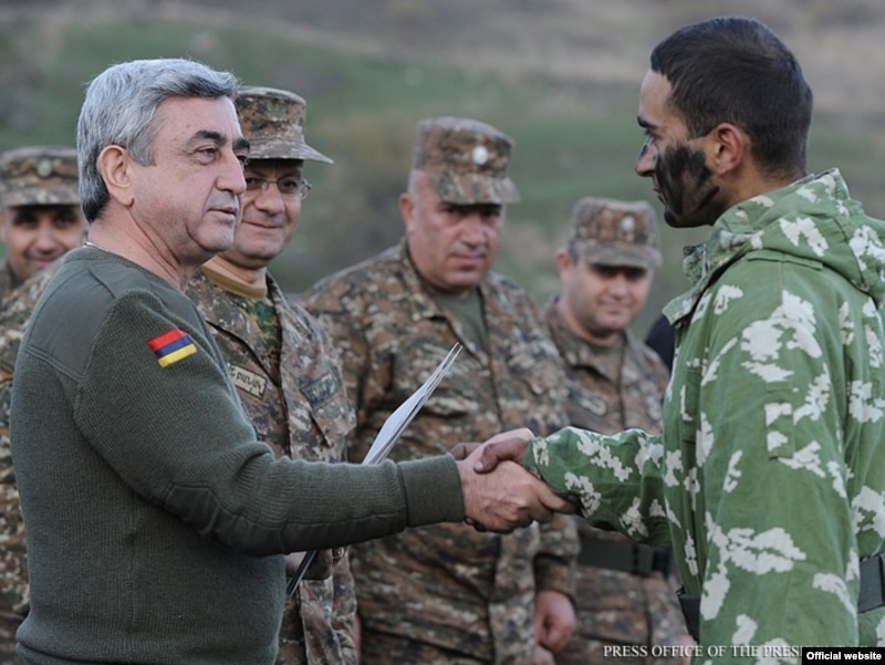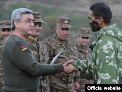 Sarkisian as well as Defense Minister Seyran Ohanian and Karabakh’s top political and military leaders inspected Armenian frontline positions east of the disputed territory on Friday before attending the final phase of the drills held in the same area since November 1. He then discussed the situation in the conflict zone with the top brass of the Nagorno-Karabakh Defense Army closely integrated with the armed forces of Armenia proper.