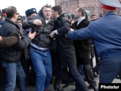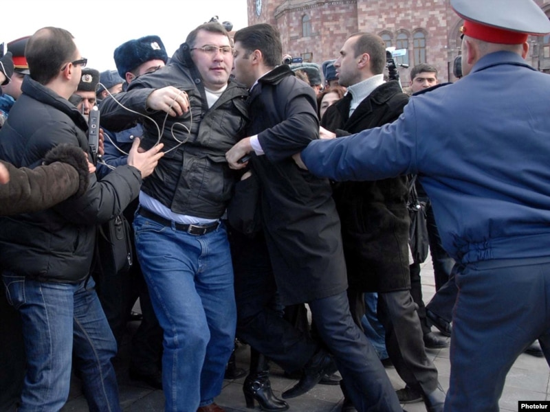 պահանջեց ոստիկաններից, որպեսզի նրանք բացեն ճանապարհը, քանի որ օրենքով խաղաղ հավաքները արգելված չեն: Նա պնդեց, որ փոխոստիկանապետի որոշումը ապօրինի է: Չնայած դրան` ոստիկանները շարունակում էին հրմշտել ցուցարարներին եւ նույնիսկ պատգամավորներին: «Ժառանգության» մեկ այլ պատգամավոր Անահիտ Բախշյանը գրեթե ուշագնաց վիճակում էր. նրա համար շտապօգնություն կանչեցին, տեղափոխեցին հիվանդանոց: Ոստիկանները նախ պատռեցին ակտիվիստ Վարդգես Գասպարիի ձեռքին եղած պաստառը, ապա գետին տապալեցին նրան եւ բերման ենթարկեցին ոստիկանության Կենտրոնի բաժանմունք: Պատգամավոր Արմեն Մարտիրոսյանն էլ փորձում էր կասեցնել ոստիկանների գործողությունները, սակայն նրան եւս քաշքշեցին: