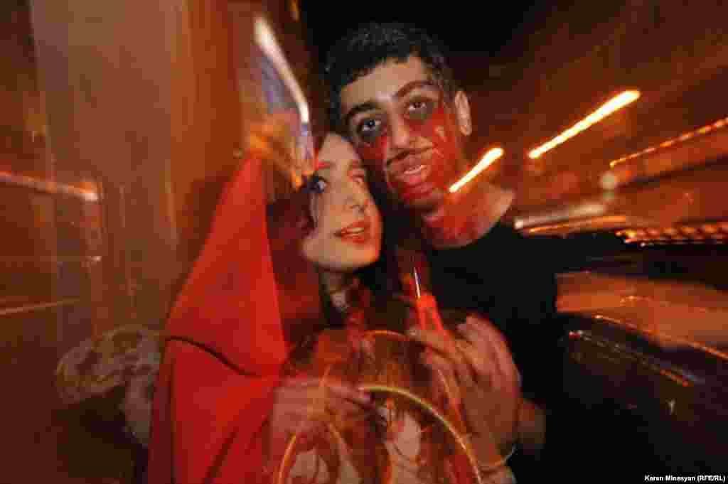 More and more young Armenians are becoming enthusiastic about celebrating the Halloween in recent years. This 'foreign' tradition had turned downtown Yerevan into a haunted town full of vampires, witches and scaremongers of all sorts on Wednesday. Check out this photoreport by Azatutyun.am's Karen Minasian.