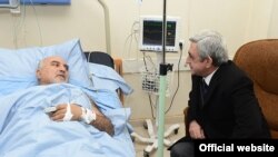 Հայաստանը նախագահ Սերժ Սարգսյանը այսօր «Սուրբ Գրիգոր Լուսավորիչ» բժշկական կենտրոնում այցելեց երեկ կեսգիշերին մահափորձի ենթարկված եւ առավոտյան վիրահատության ենթարկված նախագահի թեկնածու, ԱԻՄ նախագահ Պարույր Հայրիկյանին: