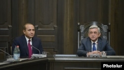 «Ինչպես գիտեք, երեկ ես ՀՀ վարչապետ եմ նշանակել Ազգային ժողովի պատգամավորների մեծամասնության վստահությունը վայելող անձին՝ Հովիկ Աբրահամյանին՝ Ազգային ժողովի նախագահին ու նաև ՀՀԿ նախագահի տեղակալին: Վարչապետի նշանակումից հետո կառավարությունը շարունակում է կատարել իր աշխատանքները, և կառավարության անդամներին խնդրում եմ, որպեսզի բարեխղճորեն և պարտաճանաչ կերպով կատարեն իրենց պարտականությունները: Մենք քսան օրվա ընթացքում վարչապետի հետ միասին ձևավորելու ենք նոր կառավարություն: Այն ժամանակ կառավարության խնդիրների մասին հանգամանորեն կխոսենք: Ինձ մնում է մեկ անգամ ևս շնորհավորել պարոն Աբրահամյանին և ցանկանալ նրան հաջողություն: Շնորհավորում եմ»,- ՀՀ կառավարությունում ներկայացնելով վարչապետին՝ ասել է Սերժ Սարգսյանը: