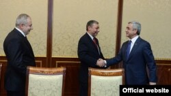 Սահմանադրական բարեփոխումների գործընթացի շրջանակներում նախագահ Սերժ Սարգսյանն այսօր հանդիպել է Հայոց համազգային շարժում (ՀՀՇ) կուսակցության ներկայացուցիչներ Ալեքսանդր Արզումանյանի, Արարատ Զուրաբյանի և Դավիթ Առաքելյանի հետ: