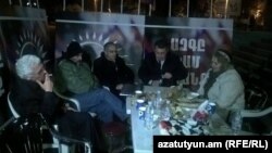 Հրապարակում գիշերող շուրջ երկու տասնյակ ընդդիմադիրներին քիչ առաջ այցելեց Հայ ազգային կոնգրեսի փոխնախագահ, «Ոչ»-ի շտաբի պետ Լևոն Զուրաբյանը: Նա զրուցեց «Նոր Հայաստան» շարժման առաջնորդ Ժիրայր Սեֆիլյանի, ինչպես նաև «Ժառանգություն» կուսակցության փոխնախագահ Արմեն Մարտիրոսյանի հետ և հեռացավ: