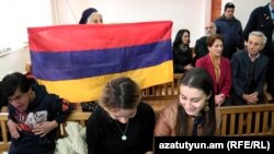 Դատավորը ընդհատեց նիստը՝ տեսնելով դահլիճում պարզված Հայաստանի դրոշը, ապա ցուցում տվեց կարգադրիչներին եռագույնը ձեռքին կնոջը դուրս բերել դահլիճից: