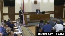 Նիստը վարող առաջին փոխքաղաքապետ Կամո Արեյանը տեղեկացրեց․ - «Երևանի քաղաքապետ պարոն Մարգարյանը բացակայում է այսօրվա նիստից առողջական խնդիրների պատճառով, հարգելի պատճառով»: