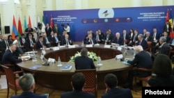 Երևանում` նախագահական նստավայրում, այսօր տեղի ունեցավ Եվրասիական բարձրագույն տնտեսական խորհրդի նիստը, որին մասնակցելու նպատակով Հայաստան են ժամանել 7 պետությունների առաջնորդներ: