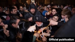 Սուրբ Պատարագի ավարտին՝ նախատոնակի ընթացքում Ամենայն Հայոց կաթողիկոսը բարձրացել է Սուրբ Խորան և վառել կենսատու մոմը, որից Հիսուս Քրիստոսին խորհրդանշող լույսը բաշխվել է հավատացյալներին: