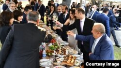 Երեկ տեղի ունեցած միջոցառման լուսանկարներից պարզ է դառնում, որ վարչապետ Նիկոլ Փաշինյանը, Ազգային ժողովի նախագահ Արարատ Միրզոյանը, մի քանի տասնյակ այլ բարձրաստիճան պաշտոնյաներ մասնակցել են բացօթյա տարածքում կազմակերպված խնջույքին՝ առանց պահպանելու սոցիալական հեռավորությունը։
