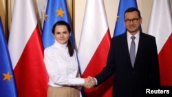 Բելառուսի ընդդիմության առաջնորդ Սվետլանա Տիխանովսկայան այսօր Վարշավայում հանդիպել է Լեհաստանի վարչապետ Մատեուշ Մորավեցկիի հետ։ Նրանք մասնակցել են «բելառուսական տան» բացմանը։