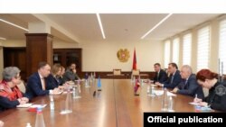 Պաշտպանության նախարար Վաղարշակ Հարությունյանն այսօր հանդիպել է Հարավային Կովկասի և Վրաստանի ճգնաժամի հարցերով Եվրամիության հատուկ ներկայացուցիչ Տոյվո Կլաարի գլխավորած պատվիրակության հետ: ՊՆ-ից հայտնում են, որ ներկա է եղել նաև Հայաստանում ԵՄ պատվիրակութան ղեկավար, դեսպան Անդրեա Վիտորինը: