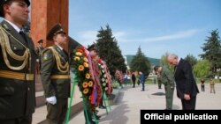 Արցախի նախագահ Արայիկ Հարությունյանն այսօր պաշտոնաթող նախագահներ Բակո Սահակյանի ու Արկադի Ղուկասյանի, ինչպես նաև մի խումբ բարձրաստիճան պաշտոնատար անձանց հետ միասին այցելել է Ստեփանակերտի հուշահամալիր և հարգանքի տուրք մատուցել զոհված ազատամարտիկների հիշատակին: