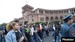 «Հայաստան» դաշինքի ներկայացուցիչների գլխավորությամբ քայլերթի մասնակիցները շարժվում են մայրաքաղաքի կենտրոնական հատվածներով` Խանջյան, Սայաթ-Նովա, Չարենց փողոցներով: