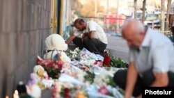 «Սուրմալու» առևտրի կենտրոնի տաղավարներն այսօր էլ փակ են, զոհերի գործընկերները եկել էին՝ ծաղիկներ խոնարհելու, խունկ ծխելու։
