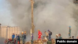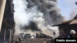 ԱԻՆ խոսնակն «Ազատությանն» ասաց՝ տեղի պահեստների եռահարկ շենքն այրվում է, մասնակի փլուզում կա: Նրա հայտնած տվյալներով` կա մեկ զոհ, 20 վիրավոր:
