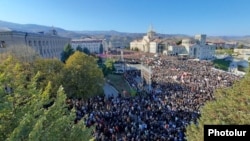Արտահերթ նիստին զուգահեռ Վերածննդի հրապարակում մարդաշատ հանրահավաք էր՝ Արցախի ներկա և նախկին նախագահների մասնակցությամբ: