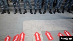 Ցուցարարներն ակցիայի ավարտին մի մեծ սլաք տեղադրեցին կառավարության շենքի առջև՝ այդկերպ ցույց տալով, թե ում են մեղավոր համարում։