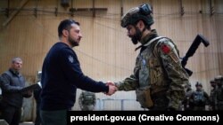 «Ինձ համար մեծ պատիվ է այստեղ լինել, շնորհակալություն հայտնել ձեր ծառայության, մեր հողերը, Ուկրաինան, մեր ընտանիքները պաշտպանելու համար»,- ասել է Զելենսկին։
