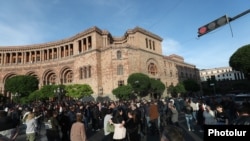 Երթի մասնակիցներն ի վերջո եկան կառավարության շենքի դիմաց՝ հայտարարելով, որ պատրաստվում են նստացույց անցկացնել Գայանե Հակոբյանի ազատման պահանջով։