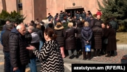 Քաղաքապետարանի առաջ հավաքված բնակիչներին այսօր լսեցին ընդդիմադիր «Մայր Հայաստան» և «Ազգային առաջընթաց» խմբակցությունների ավագանու անդամները. - «Մենք ոչ մի օրինագծի կողմ չենք քվեարկել, շատ դեպքերում անգամ բոյկոտել ենք, մենք ընդդիմություն ենք, մենք ավագանու որոշումներն ենք միայն քննարկում, այլ բան, որ ձեր բարձրացրած հարցերը մենք կարող ենք ավագանու նիստի ժամանակ բարձրաձայնել և լուծումներ պահանջել, ստիպենք, որ պատասխանեն»։