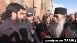 Նրան միացան շուրջ երկու տասնյակ աջակիցներ՝ «դավա՛յ, գնացե՛ք ստեղից» խոսքերով թեմի հոգևորականներին հրահանգեցին հեռանալ: