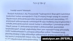 Վերջին երկու շաբաթում երկրորդ նամակը փոխանցեցին՝ ուղղված փոխվարչապետ Մհեր Գրիգորյանին, տարածքային կառավարման ու էկոնոմիկայի նախարարներին։