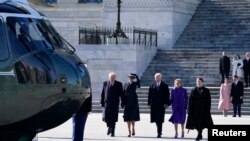 Երդմնակալության արարողության ավարտին արդեն նախկին նախագահ Ջոզեֆ Բայդենն ու նրա կինը Կապիտոլիումը լքեցին ուղղաթիռով։ Նրանց մինչև ուղղաթիռ ուղեկցեց Թրամփերի զույգը։ Թեև արտաքնապես նրանք միմյանց հետ շատ ջերմ էին շփվում, Բայդենի՝ նախագահի պաշտոնում ստորագրած վերջին հրամանագրերը վկայում են՝ ԱՄՆ 46-րդ նախագահը իր նախորդին ու հաջորդին չի վստահում։