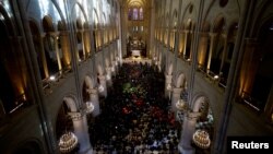 Ֆրանսիայի նախագահ Էմանյուել Մակրոնը տաճարում շնորհակալություն է հայտնել հինգուկես տարի վերականգնման աշխատանքներին մասնակցած հազարավոր աշխատակիցներին ու նվիրատուներին։