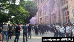 Կառավարության շենքը մի քանի շարքով ոստիկանական պատն է հսկում: